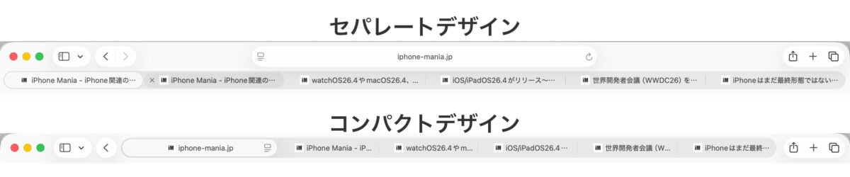 開発者向けに配信が開始されたmacOS Tahoe 26.4およびiPadOS 26.4のSafariにて、一度廃止された「コンパクトタブバー」がオプションとして復活しました。